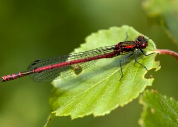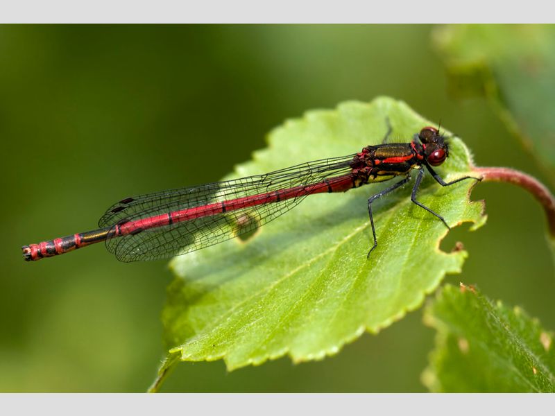 Dat huidje blijft achter als de juffer is opgepompt en opgedroogd en haar ‘maiden flight’ maakt. Zolang het niet flink gaat regenen blijven die huidjes achter op de oeverplanten. De jufferlarven zijn vrij klein en slank en je moet dan ook goed de waterkant afzoeken om ze te vinden. De larven van glazenmakers bijvoorbeeld, veel grotere libellen, zijn veel gemakkelijker te vinden. De juffers zijn nog vrij bruinig als ze net uit de larve zijn, maar al snel kleuren ze uit en worden ze prachtig dieprood. Ze zijn dan niet meer te verwarren met andere juffers. De koraaljuffer, die er best wel wat op lijkt, vliegt namelijk nog lang niet en verschijnt pas in juni. Dit jaar verschenen de eerste vuurjuffers op 9 april en nu komen ze op veel meer plekken massaal tevoorschijn. Hij komt in het hele land voor en langs allerlei water zijn ze te vinden, ook in kleine tuinvijvers. Vroeger kwamen ze in West Nederland maar weinig voor, maar mede doordat er in veel tuinen tuinvijvers werden aangelegd heeft de soort zich kunnen uitbreiden.