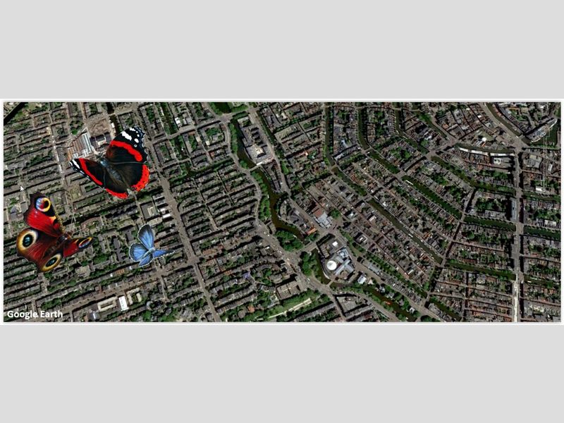 Een vlinder als de atalanta, die vele honderden kilometers vliegt, zal ook tuinen weten te vinden die omringd worden door steen en beton. Ook de koolwitjes, kleine vos en dagpauwoog zijn erg mobiel. Gehakkelde aurelia, landkaartje en het genoemde boomblauwtje kunnen ook flinke afstanden afleggen, maar die zijn wat meer afhankelijk van groenstroken met bomen en struiken. Heb je die in de buurt van je tuin, dan is de kans groter dat je deze aantreft. Dat geldt ook voor bloemrijk grasland en de typische vlinders die daarbij horen als kleine vuurvlinder, icarusblauwtje en bruin- en oranje zandoogje. De kick-off van de tuinvlindertelling vindt plaats in het Natuurhistorisch in Rotterdam, waar op dit moment een prachtige film draait. Kunstenaar Rogier Maaskant filmde de vlinders in zijn tuin en vertoont deze beelden in zwart-wit en vertraagd. Dat levert heel bijzondere beelden op. Stadsecologen van Rotterdam en Amsterdam zijn aanwezig bij de kick-off en zullen proberen zoveel mogelijk stadgenoten te laten meetellen. Ook zij zijn geïnteresseerd in de stadstuinvlinders. Als veel mensen tellen kunnen we na dit weekend wellicht uitspraken doen over de binnenstadsvlinders en misschien wel over de verschillen tussen de tuinvlinders van de grote steden.