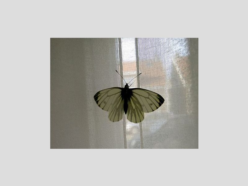 Op 6 januari vond Mart van der Slot een verrassing in zijn huiskamer. In de gordijnen hing een net uit de pop gekropen klein geaderd witje. Vermoedelijk heeft deze als pop in de kerstboom gehangen en door de hoge temperatuur binnenshuis gedacht dat de lente was begonnen.