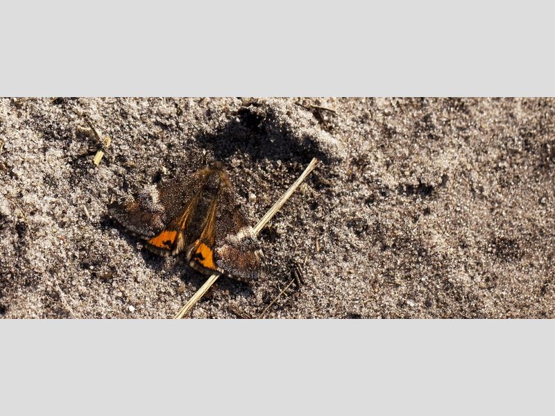 Kleine vuurvlinders gaan namelijk regelmatig zitten om te zonnen, zeker als het maar tien graden is. Of ze gaan op bloeiende planten zitten om te drinken. Dan kun je ze goed bekijken en ook nog wel eens op de foto zetten. Oranje berkenspanners zie je maar weinig zittend, die vliegen continu. De oranje berkenspanner is geen zeldzame soort op de zandgronden, op heiden met berken. Desalniettemin wordt de vlinder niet vaak gemeld. Dat komt door de vroege vliegtijd, het vele vliegen en het feit dat je hem niet op bloemen tegenkomt.