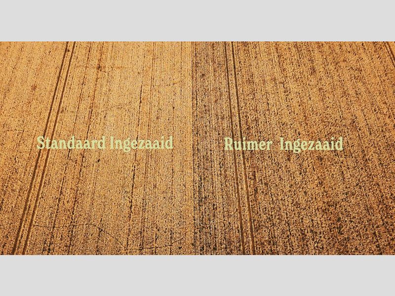 Verder werd geëxperimenteerd met het breder zaaien van tarwe. Bij akkerbouwer Johan van Beek werd tarwe op één perceel deels gangbaar en deels op bredere rijen gezaaid. Door de ruimere rijafstand krijgen tarweplanten meer licht en ruimte, wat hun ontwikkeling ten goede komt. Proeven laten zien dat het ruimer zaaien daardoor gemiddeld slechts zo’n 8 procent tarweopbrengst kost. In Van Beeks perceel ontwikkelde de klaver zich tussen de ruimer gezaaide tarwe duidelijk beter en werden aanzienlijk meer insecten waargenomen. Reden genoeg voor het projectteam om deze aanpak verder te onderzoeken.
