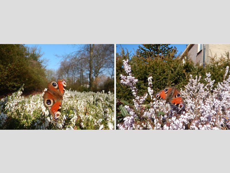 De vinders die uit overwintering komen gaan snel op zoek naar plekken waar ze nectar kunnen drinken, want dat is de brandstof waardoor ze kunnen vliegen. Wil je die vlinders te zien krijgen, dan moet je op zoek gaan naar plekken met bloeiende planten. In het vroege voorjaar bloeien er, buiten tuinplanten, nog niet zoveel planten, maar klein hoefblad is de eerste die we kunnen tegenkomen. In tuinen zijn er ook in februari al planten die gebruikt kunnen worden. Nu staat al de welriekende kamperfoelie te bloeien en ook de winterheide biedt voedsel. Binnenkort volgt de voorjaarshazelaar en komen de krokussen en andere bolgewassen tevoorschijn. Later in het voorjaar komen er meer planten in bloei waar ze gebruik van maken, zoals wilgen en sleedoorns. Ik kan bijna niet wachten tot het voorjaar wordt en ben heel benieuwd of er echt weer een dagpauwoogpiek staat aan te komen.