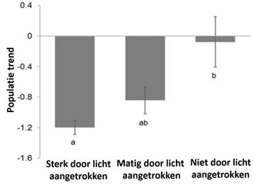 Hoewel je overal in Nederland lichtvervuiling hebt, zijn er ook nog wel plekken zonder directe belichting. Nachtvlinders zijn vaak met veel individuen en leggen veel eieren, zodat de sterfte van een paar dieren voor de populatie niet veel uit hoeft te maken. Deze studie laat echter zien dat de effecten van kunstlicht doorwerken op populaties en dat nachtelijk kunstlicht niet alleen voor individuele nachtvlinders een bedreiging vormt, maar ook voor populaties. Lichtvervuiling is een belangrijke oorzaak van de achteruitgang van nachtvlinders in Nederland.