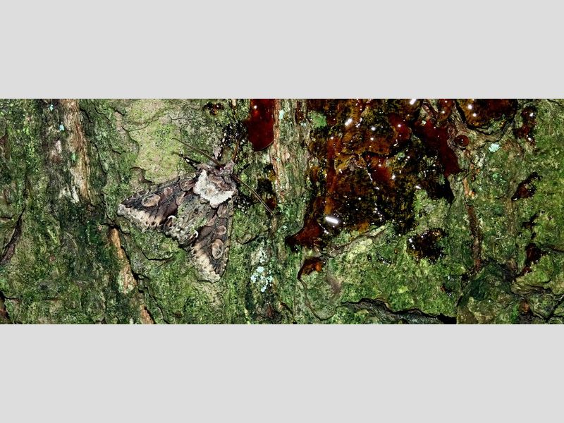 Nu is de tijd om op zoek te gaan naar de meidoornuil, als u die een keer te zien wilt krijgen. Half oktober is de toptijd. Een goede manier om ze te lokken is door te stropen. En het is echt een schitterende vlinder. Hij is vrij groot voor een nachtvlinder, maar ondanks de schitterende tekening en kleuren is hij niet altijd makkelijk te vinden. Als hij op een bemoste stam zit, kan hij helemaal wegvallen door de schitterende camouflage van de groenige schubben en de bruinige vlekken. Gelukkig kunt u de vlinders ook vinden op rottend fruit en op bloeiende klimop. En die is op dit moment heel veel aanwezig.