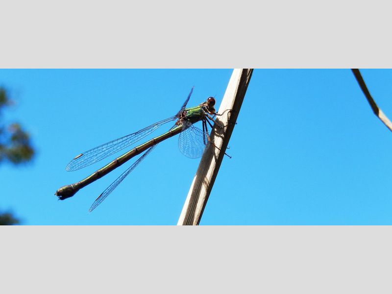 De meeste libellen zetten hun eitjes in het water af en een aantal doet dat op planten langs de oever. De houtpantserjuffer is een bijzonder geval, want de vrouwtjes boren gaatjes in bomen en struiken en leggen de eitjes onder de bast. Daar blijven ze maanden zitten, tot in april de larven uit de eitjes komen. Deze laten zich gewoon vallen en komen dan in het water, of vlak daarbij, terecht. De vrouwtjes gebruiken namelijk alleen maar bomen en struiken die aan de rand van het water staan. Houtpantserjuffers zijn late libellen – hun top hebben ze in augustus en september en ook in oktober en november kun je ze nog te zien krijgen. Dan worden ze vaak veel donkerder en bruin metallic, terwijl de verse juffers prachtig felgroen zijn. Ze zitten in het hele land en zijn niet erg kritisch over de waterkwaliteit of de begroeiing in het water. Als er bomen of struiken langs het water staan, dan kunnen ze er voorkomen.