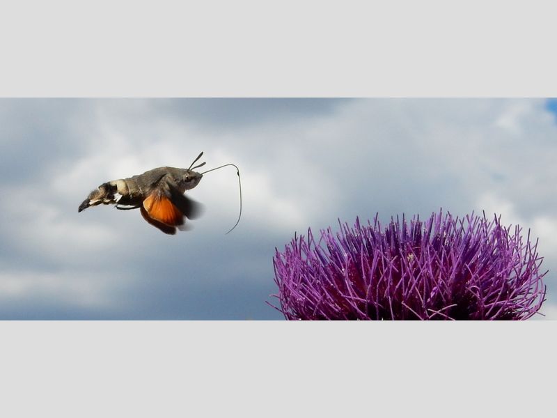 Hij heeft zijn naam niet voor niets, want het lijkt net een kolibrie. Stilstaand voor een bloem drinkt hij de nectar, de kolibrievlinder. De afgelopen weken is hij op veel plekken in Nederland weer gezien, vooral in tuinen.