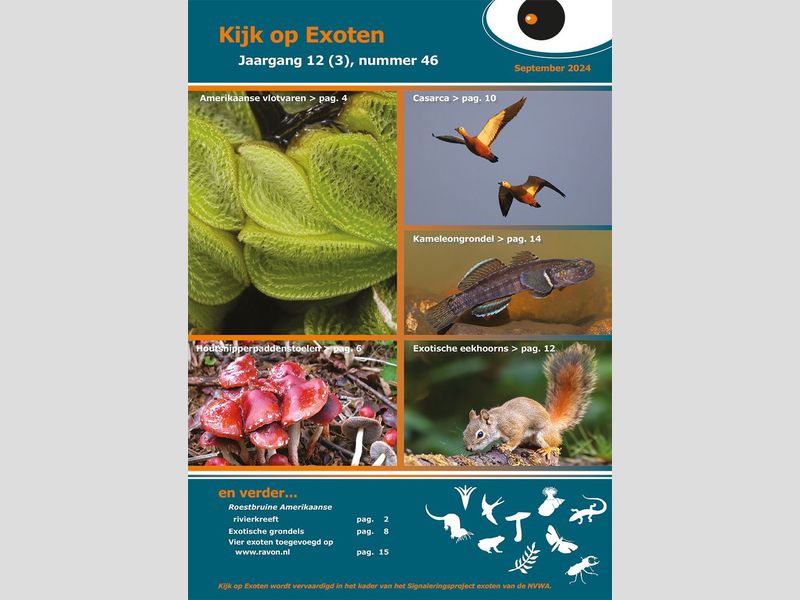 Er is weer een nieuwe nieuwsbrief over exoten. Er staan geen vlinders of libellen in, maar wel interessante bijdragen over Amerikaanse vlotvaren, casarca, kameleongrondel, houtsnipperpaddenstoelen, exotische eekhoorns en meer.