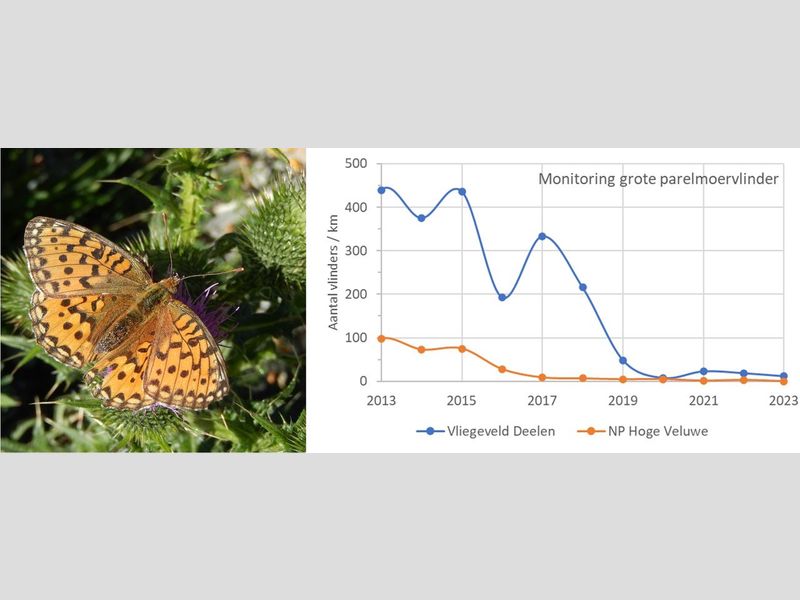 De grote parelmoervlinder is in Nederland een ernstig bedreigde dagvlinder. Het is een kenmerkende soort van een schrale, dus stikstofarme omgeving. Gelderland herbergt op de Veluwe meer dan de helft van de Nederlandse populatie. Sinds 2017 is de soort sterk in aantal achteruitgegaan. De problemen en kansen voor herstel zijn onlangs nader onderzocht.