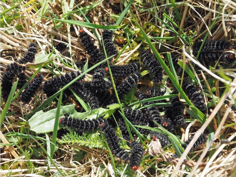 In zo'n nestje overwinteren de rupsen met tientallen bij elkaar. Als de temperatuur stijgt (en zeker als de zon gaat schijnen) worden ze actief. Door hun zwarte kleur warmen ze snel op, bij een luchttemperatuur van 10 graden kunnen ze dan zelf wel 30 graden bereiken!