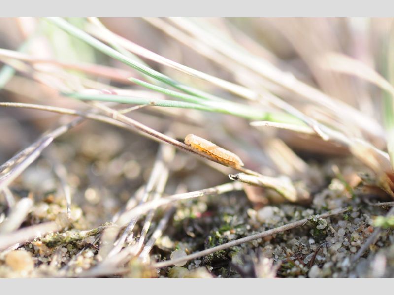 De kleine heivlinder en de iets minder zeldzame heivlinder brengen een heel groot deel van hun leven door als rups. Van augustus, als ze uit hun ei kruipen tot het volgend jaar juni als ze verpoppen, zijn de rupsen aanwezig en ze gaan dus ook als rups de winter door. Op dit moment zijn de rupsen nog niet erg groot. Als het koud wordt gaan ze in winterrust en volgend voorjaar, als de temperatuur stijgt zullen ze weer verder gaan met eten en groeien. De rupsen zijn kieskeurig en eten het liefst schapengras en buntgras. Deze smalbladige grassen staan op droge en voedselarme plekken. Op het Kootwijkerzand komen ze regelmatig voor in de overgang van het open zand naar de wat meer begroeide delen. De kleine heivlinder heeft een voorkeur voor buntgras en de ‘gewone’ heivlinder voor schapengras. Maar op plekken waar niet veel grassen groeien zou er concurrentie kunnen zijn tussen de twee soorten. Daarom is deze zomer door Annemieke Slootweg, stagiaire bij De Vlinderstichting, onderzoek gedaan naar waar de eitjes worden afgezet.