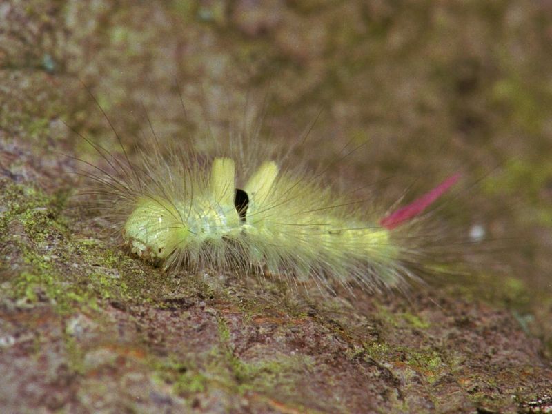 In oktober komen ze naar beneden uit de bomen: de meriansborstelrupsen. Het zijn prachtige diertjes met een bizarre verzameling haren, borsteltjes en een fraai rood staartje. Ze kruipen uit de boom, maar laten zich ook gewoon vallen en met flinke wind waaien ze naar beneden.