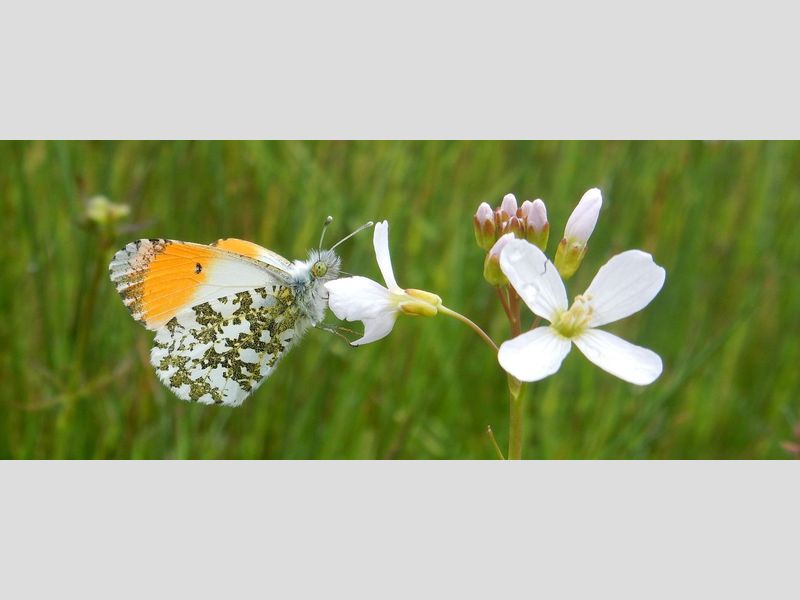 Het was kortgeleden de week van het oranjetipje. Heel veel mensen hebben dit fraaie vlindertje gezien en foto’s ervan gedeeld op de sociale media. Het oranjetipje vliegt nog steeds, maar binnen een week of twee zul je geen vlinders meer tegenkomen. Je kunt dan nog wel de eitjes, maar meer nog de rupsen, zien. Deze zijn tot in juni nog te vinden.