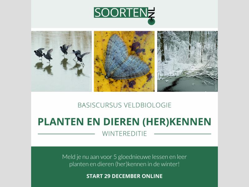 Voor 75 euro krijg je niet alleen toegang tot de wintereditie, maar kun je ook de tien lessen uit de eerste reeks (en de bonusles over gallen) terugkijken en ontvang je de tweede druk van het Basisboek Veldbiologie. Dat is veertig uur online informatie over planten en dieren in Nederland. Leuk om de donkere dagen te vullen met weetjes en feitjes en praktische tips over hoe je ze kunt herkennen en er zelf onderzoek naar kunt doen. Aanmelden kan hier.