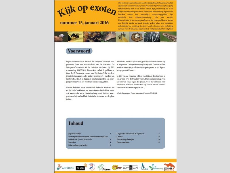 De laatste jaren is er steeds meer aandacht voor exoten in de Nederlandse natuur. Sommige exoten kunnen schadelijk zijn omdat ze inheemse planten of dieren verdringen. In deze tweede nieuwsbrief 'Kijk op exoten' allerlei nieuws en wetenswaardigeden.