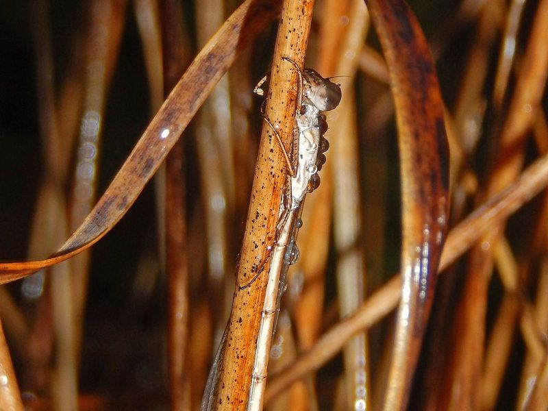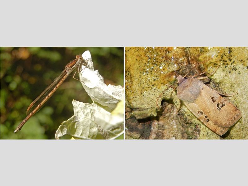 Zelfs op de regenachtige, winderige en kille dagen worden er wel vlinders en libellen doorgegeven. Maar als je dan in de details gaat kijken, blijkt het vaak om rupsen of poppen van vlinders te gaan en om de larven van libellen. Maar er zijn ook nog wel libellen te zien, want de twee winterjuffers overwinteren als juffer en zitten nu ergens, als imago, in hun overwinteringsgebieden. De bruine winterjuffer is een vrij algemene soort en ook overwinterend kun je deze in het hele land wel aantreffen. Dan moet het wel goed winterweer zijn, met een niet te lage temperatuur en een zonnetje erbij. Dan worden ze actief en vallen ze meer op. Als ze helemaal in winterrust zitten, aangeklemd tegen een bruin takje, zie je ze snel over het hoofd. De andere winterjuffer, de noordse, is een zeldzaamheid. Ze planten zich voort in Noordwest-Overijssel en in het oosten van de Noordoostpolder. Maar als in het najaar de dagen korter worden, gaan ze op reis. Dan kunnen ze tientallen kilometers vliegen en eindigen ze op heideveldjes in Drenthe en Zuidoost-Friesland. Daar brengen ze de winter door en in het voorjaar vliegen ze weer terug om zich voort te planten.