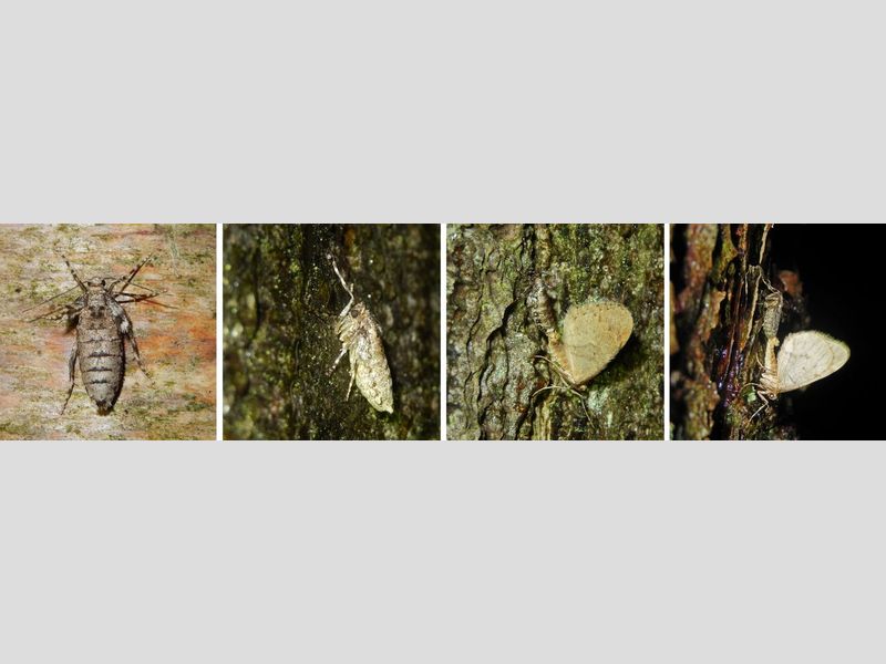 Die mannetjes zitten met z’n allen te wachten op vrouwtjes. Deze zitten als pop in de strooisellaag, in de bladeren onder de bomen. Als de vlinder uit de pop komt, kruipt ze omhoog tegen de stam aan. Het zijn namelijk vleugelloze vrouwtjes, die niet kunnen vliegen. Helemaal vleugelloos zijn ze trouwens niet, want je ziet nog kleine stompjes zitten op de plek waar vele duizenden jaren geleden de vleugels zaten. In de loop van de jaren zijn deze in onbruik geraakt en uiteindelijk vrijwel verdwenen. Dit zien we bij meer vlinders die in de winter of het vroege voorjaar vliegen. De vrouwtjes komen, tijdens hun tocht naar boven, zeker ende vast mannetjes tegen en ze paren ergens op de onderste twee meter. Na de paring kruipt het vrouwtje verder omhoog en legt eitjes in de boomkruin. De vrouwtjes zijn dus zeer honkvast en plaatstrouw. De verspreiding van de kleine wintervlinder gebeurt door de rupsen. De jonge nuchtere rupsjes laten zich, met zijden draadjes, door de lucht meevoeren en komen meters tot kilometers van de plek waar ze uit het ei zijn gekomen terecht. Die rupsen zijn trouwens een belangrijke voedselbron voor vogels, vooral mezen. Ze zijn zo talrijk dat ze vaak het hoofdvoedsel zijn voor jonge koolmezen en andere insectenetende vogels.