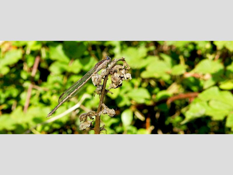 Er zijn, zo laat in het jaar, niet veel libellen meer. Een enkele steenrode of bruinrode heidelibel, paardenbijter of houtpantserjuffer kun je nog tegenkomen. En natuurlijk de winterjuffers! Die zoeken nu hun overwinteringsplekken.