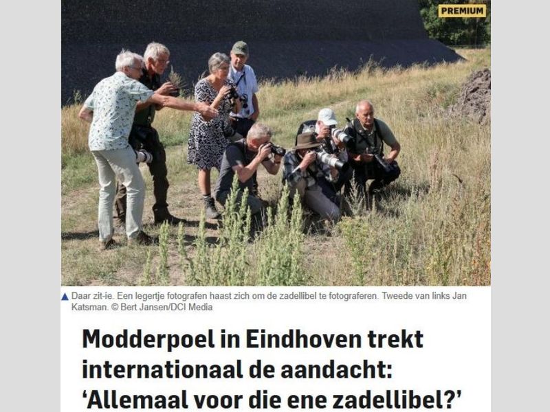 De aantallen waren dit jaar veel lager dan in 2019 bij de grote invasie, toen ze zich voor de eerste keer succesvol in Nederland voortplantten. Maar op 14 augustus vond Wim Deeben een net uitgeslopen zadellibel bij Eindhoven. De dagen daarna is er een flink aantal jonge zadellibellen en hun huidjes gevonden. De habitat is een ondiepe modderige plas aan de rand van een industrieterrein met veel slijkgroen en perzikkruid, en langs de rand hier en daar lisdodde. Er vliegen grote aantallen zwervende heidelibellen en een klein aantal tengere grasjuffers – beide ook soorten van pionierhabitats – naast lantaarntjes en gewone oeverlibellen. Behalve zadellibel zijn er uitsluipende zuidelijke keizerlibellen gevonden en ook de grote keizerlibel vloog er rond. Toch bijzonder in Nederland, drie soorten keizerlibellen bij elkaar!