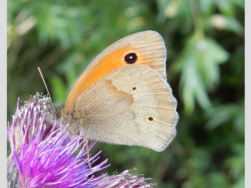 Van de drie zomerzandoogjes die maar één generatie hebben, is het bruin zandoogje het meest algemeen. Dit komt verspreid door het land voor, hoewel niet overal in even hoge aantallen. Plaatselijk kan het bruin zandoogje erg talrijk zijn. Zo werden vorige week, in een route in de Betuwe 79 bruin zandoogjes geteld op een sectie van 50 meter lang en 5 meter breed. Bruin zandoogjes zijn nu zo’n beetje op hun top, maar zijn nog te zien tot in augustus. Het oranje zandoogje begint nu. Dit heeft een bijzondere verspreiding. Hij is talrijk in Zeeland en Noord-Brabant, ontbreekt vrijwel helemaal in Midden-Nederland en komt wel weer voor in Zuidoost-Friesland en Drenthe. Het oranje zandoogje is duidelijk kleiner dan het bruine en heeft veel meer oranje op de bovenzijde. De laatste zomerzandoog is het koevinkje. Dat is niet moeilijk te herkennen door de rij met mooi geelomrande oogjes op de vleugel. Koevinkjes komen vooral voor op de zandgronden in het oostelijk deel van Nederland en de duinen. Ook dit zijn graslandvlinders, maar ze zijn vaak in de buurt van bomen en struiken te vinden.