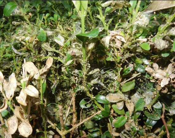 Elkie: "Mijn ouders hebben hun buxusstruiken af en toe ‘platgespoten’ met de hogedrukreiniger, gewoon met koud water onder druk dus. Geen gif, uiteraard. Dat maakt ook de andere insecten en jonge vogels dood. Hun struiken leven nog!"