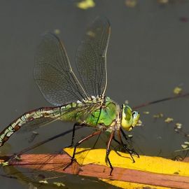 Gelijkende soorten: Zuidelijke keizerlibel, groene glazenmaker, zuidelijke glazenmaker, eventueel zadellibel. Meer over gelijkende soorten: Mannetjes zuidelijke keizerlibel en zadellibel hebben meestal geen blauw, maar een zandkleurig, bruin of grijs achterlijf. Ze hebben zij een sterk contrasterend blauw ‘zadel’, wat bij grote keizerlibel ontbreekt. Het borststuk van zuidelijke keizerlibel en zadellibel kan verschillende kleuren hebben, maar is nooit geheel grasgroen zoals bij de grote keizerlibel. Vrouwtjes grote en zuidelijke keizerlibel zijn variabel gekleurd en lijken soms sterk op elkaar. Het borststuk van grote keizerlibel is doorgaans groener. Aan het begin van het achterlijf hebben zuidelijke keizerlibellen een gele ring, die bij grote keizerlibellen alleen aanwezig is bij jonge dieren. Vrouwtjes zadellibel hebben vaak geen duidelijk blauw zadel, maar verschillen dan van grote keizerlibel door het oranjebruine achterlijf en het bruingele borststuk. De drie soorten hebben verder detailverschillen in de koptekening en de vorm van de achterlijfsaanhangselen. Vrouwtjes zuidelijke keizerlibel hebben bovendien twee kleine doorntjes achter de ogen. Tot slot lijkt ook de groene glazenmaker op de grote keizerlibel. Groene glazenmakers hebben echter een mozaïektekening van vlekjes op het achterlijf, in plaats van een doorlopende zwarte streep. Bovendien is het borststuk van groene glazenmakers aan de bovenkant bruin met twee brede groene schouderstrepen, in plaats van geheel groen.
