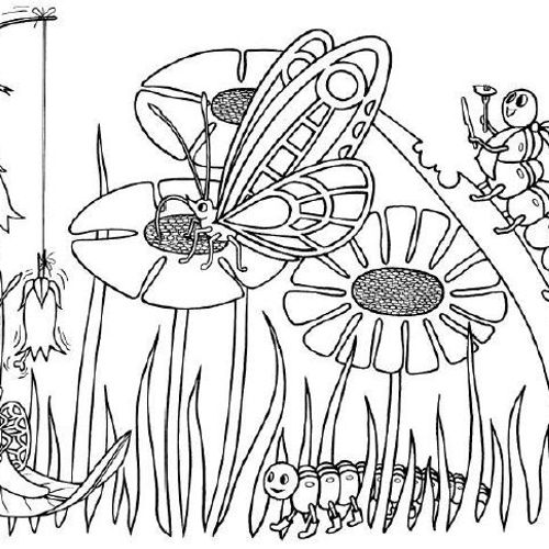 Kleurplaat vlinders en rupsen