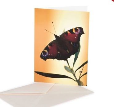 Deze dubbele wenskaart is voorzien van schitterende foto van de dagpauwoog. De binnenkant is blanco en de kaart is voorzien van enveloppe. Een uniek exemplaar voor vlinderliefhebbers.