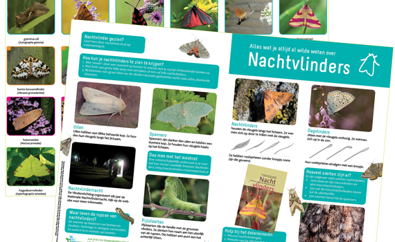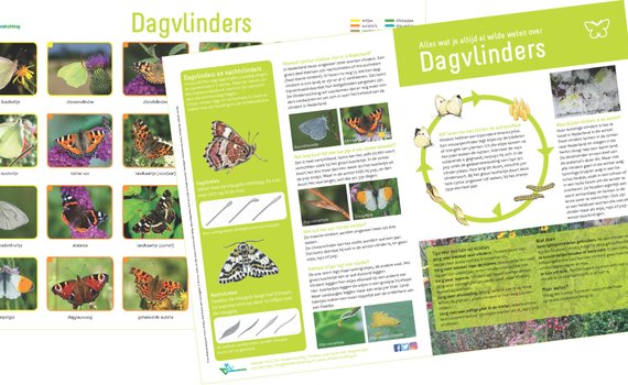 Een kleurrijke poster met informatie over en foto's van de 24 meest voorkomende dagvlindersoorten van Nederland. Afmeting 2xA4 gevouwen tot A4.
