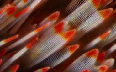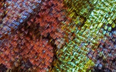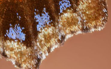 Hierboven is goed te zien hoe divers de schubvormen zijn en hoe ingenieus de schubben gebouwd zijn. Op de microscoopfoto van een schub van de gestippelde houtvlinder zie je de structuur van een enkele schub. Op de detailfoto van de rand van de vleugel van het groot avondrood zie je dat de rand bestaat uit langere, meer harige schubben. Dit is een van de aanpassingen die vlinders hebben om beter te kunnen vliegen - en ook stiller.