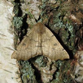 Voorvleugellengte: 20-24 mm. Deze spanner, die in rust de vleugels helemaal plat houdt, is driehoekig van vorm en heeft sterk en onregelmatig geschulpte randen aan de voorvleugel. Het veld tussen de centrale dwarslijnen op de voorvleugel is soms donkerder gekleurd waardoor een middenband gevormd wordt, maar het kan ook dezelfde kleur hebben als de rest van de vleugel of zelfs iets lichter zijn. De grondkleur varieert van witachtig bruin tot diep chocoladebruin; de meeste vlinders zijn geelbruin met witgerande dwarslijnen. Zowel op de voor- als op de achtervleugel bevindt zich altijd een centrale ringvormige vlek.