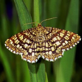 Voorvleugellengte: 11-15 mm. Karakteristiek is het netwerk van donkere dwarslijnen en vleugeladers aan de boven- en onderzijde van de vleugels. De breedte van de lijnen varieert sterk. De twee buitenste lijnen vloeien in het midden vaak samen. Kleur en tekening zijn variabel. Er zijn bijvoorbeeld exemplaren waarvan de vleugels, op de geblokte randen na, grotendeels donkerbruin zijn. Daarnaast komen ook vlinders voor waarvan de vleugels roomachtig geel zijn, zonder dwarsbanden. Ook worden soms exemplaren met een zuiver witte ondergrond waargenomen.