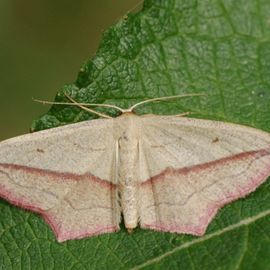 Voorvleugellengte: 15-18 mm. Gemakkelijk te herkennen aan de rozerode of roodachtig bruine diagonale lijn die vanuit de vleugelpunt schuin over de voorvleugel naar de binnenrand loopt en doorloopt over de achtervleugel. Ook de helder rozerode achterrand van de vleugels is kenmerkend. De grondkleur van de vleugels is roomkleurig bruin met een variabele zeer fijne donkere spikkeling. De achtervleugel heeft halverwege de achterrand een duidelijke punt. De rozerode tinten kunnen in de loop van de vliegtijd verbleken waardoor het bruin gaat overheersen; de tekening varieert weinig. Zeer zelden worden donkerbruine of purperachtig zwarte exemplaren waargenomen. Exemplaren van de eerste generatie zijn groter dan die van de tweede generatie; vlinders van de derde generatie zijn witter met een grovere spikkeling.
