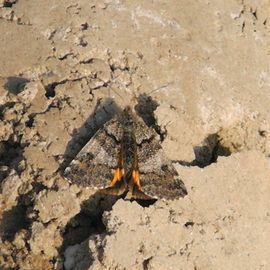 Zie de oranje berkenspanner (Archiearis parthenias).Bekijk de gedetailleerde verschillen met illustraties tussen beide soorten.