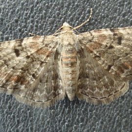 Voorvleugellengte: 11-15 mm. Een van de grootste van de Eupithecia-soorten die in Nederland voorkomen en daaraan meestal duidelijk te herkennen; soms komen echter kleinere exemplaren voor. De voorvleugel is vrij breed en heeft een duidelijke zwarte middenstip. De centrale dwarslijnen zijn zwart afgezet, vooral langs de voorrand, en vormen daar vaak twee zwarte vlekken; de vlek bij de binnenste dwarslijn vloeit vaak samen met de middenstip tot een grote, dikke zwarte balk. Zowel in het wortelveld als in het zoomveld bevindt zich een bruine dwarsband; het achterlijf heeft aan de basis eveneens een bruine band. Er is enige variatie in tekening.