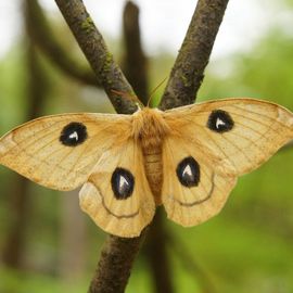 Voorvleugellengte: ♂ 25-30 mm, ♀ 35-42 mm. Een grote vlinder met zowel op de voor- als de achtervleugel een blauwe oogvlek met daarin een duidelijke witte vlek in de vorm van een T; deze witte vlek is ook op de onderkant van de vleugels zichtbaar. De vleugels zijn warm geelbruin met een rode tint bij het mannetje en lichter geel bij het vrouwtje. Als enige aanwezige dwarslijn is er een donkere golflijn. Deze is op de achtervleugel doorgaans dikker dan op de voorvleugel. Vooral de vleugelzoom is fijn donker bespikkeld. De dikte van de golflijn en de mate van bespikkeling variëren; soms komen exemplaren voor met een zeer donkere vleugelzoom.