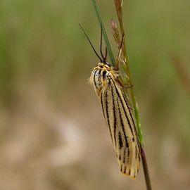 Twee beertjes hebben, afwijkend van de andere beertjes, grassoorten als waardplant en beide hebben een streeppatroon op de vleugels: Coscinia cribraria, die een witte tot lichtgrijze grondkleur onder de strepen heeft en deze soort, Coscinia striata, met een gele grondkleur.