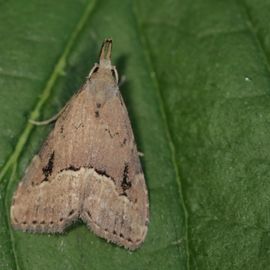 Voorvleugellengte: 9-11 mm. Deze lichtbruine snuituil kan vanwege de kleine afmetingen gemakkelijk worden aangezien voor een microvlinder. Opvallend is de zwarte buitenste dwarslijn die aan de buitenzijde afgezet is met een witte zone, die vooral bij de binnenrand goed opvalt. De middenvlek is zichtbaar als een kleine donkere vlek; heel soms loopt er vanuit de niervlek een korte streep in de richting van de achterrand, maar deze reikt vrijwel nooit tot aan de buitenste dwarslijn. De binnenste dwarslijn is getand en de golflijn in het zoomveld is lichtgekleurd. Er is weinig variatie. Evenals de andere snuituilen heeft deze soort een opvallende 'snuit', gevormd door de lange palpen.