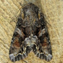 Voorvleugellengte: 16-19 mm. Opvallend is het gemarmerde uiterlijk van de voorvleugel dat veroorzaakt wordt door diverse witachtige vlekken op een grijsachtige ondergrond en de vaak rozeachtige of oranjebruine tint. Het beste kenmerk is een duidelijke witachtige V die in rusthouding over de beide voorvleugels te zien is. Deze V wordt gevormd door de witte ringvlekken, de witte vlekken in de binnenrandhoeken en de daartussen liggende langwerpige lichte vlekken. Net als bij de andere Lacanobia-soorten heeft de golflijn in het midden een duidelijke W.