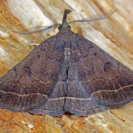 Lijnsnuituil (Herminia tarsipennalis) en geellijnsnuituil (Trisateles emortualis).