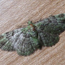 Deze dwergspanner heeft een groene kleur op de voorvleugels.