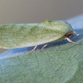 Voorvleugellengte: 10-12 mm. Houdt in rust de vleugels onder een scherpe hoek in dakvorm. De voorvleugel heeft een doorgaans groene, soms ook bruingroene of licht grijsbruine kleur met vaag zichtbare, evenwijdig aan elkaar lopende donkere V-vormige dwarslijnen (waarvan het korte deel op de buitenste vleugelhelft vaak nauwelijks te zien is). Soms ligt er tussen twee van deze dwarslijnen een donker paarsachtig bruine zone waardoor er in rusthouding een opvallende bandvormige V over de beide vleugels is te zien. Een donkere vleugelzoom ontbreekt en de franje is doorgaans licht tot witachtig groen. De achtervleugel is wit.