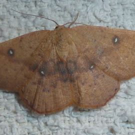 Oogspanners hebben alle een meer of minder duidelijk oog op de voorvleugels. Over de geelachtige gronkleur van deze oogspanner ligt een opmerkelijke oranjerode waas.