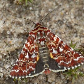 Het vlindertje is roodachtig, bont en het leeft op de heide.