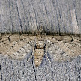De vleugeltekening van deze dwergspanner toont veel streepjes.