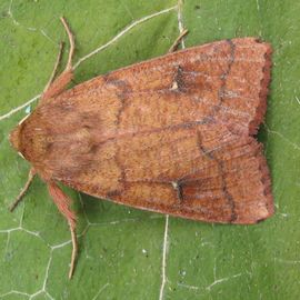 Voorvleugellengte: 18-23 mm. Deze grote uil is te herkennen aan de brede warmbruine, soms rossig getinte voorvleugel en de opvallende, brede donkere middelste dwarslijnen. In het middenveld bevindt zich een kenmerkende witte vlek die enigszins doet denken aan een gleuf.