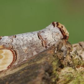 Voorvleugellengte: 22-26 mm. Een goed herkenbare tandvlinder die in rust de vleugels over het achterlijf heen vouwt en op een afgebroken berkentakje lijkt. Dit komt door het bastachtige uiterlijk en de vaalgele ronde vlek op het borststuk en in de vleugelpunt. Er is weinig variatie.