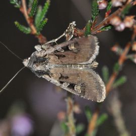 Begin juli-half september in één generatie. De vlinders bezoeken bloemen van kruiskruid en struikhei en komen op smeer en op licht.