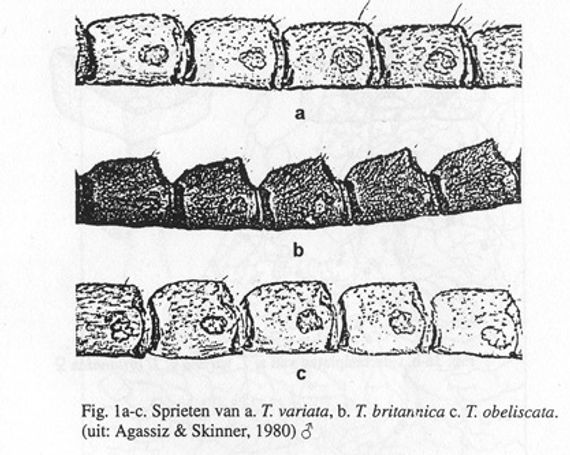 De drie moeilijkste Thera-soorten (de sparspanner (T. variata)), de schijn-sparspanner (T. britannica) en de grijze vorm van de naaldboomspanner (T. obeliscata)) zijn bij mannetjes te onderscheiden aan de zaagtanding van de antennenleden. De eventuele zaagtanden zitten aan de binnenkant van de antennen!