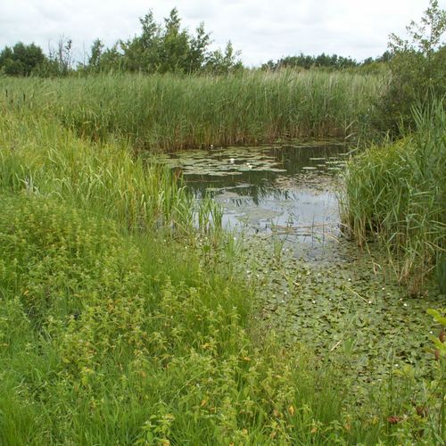 Begroeide natte drassige gebieden zonder goede afwatering.