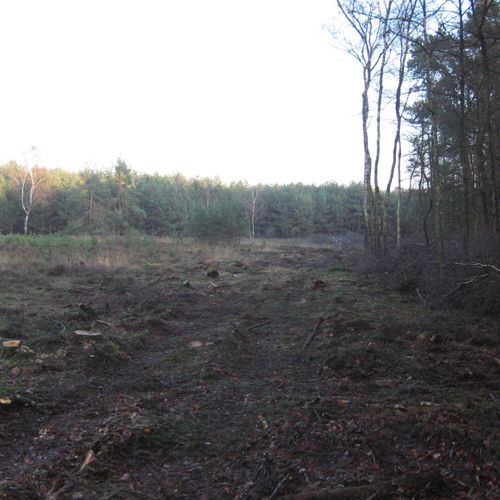 Stukken bos waarvan de meeste bomen gekapt zijn.